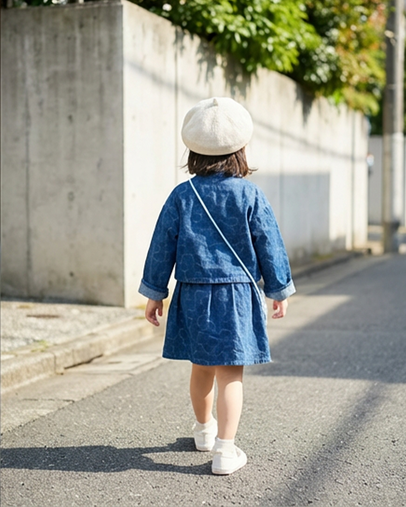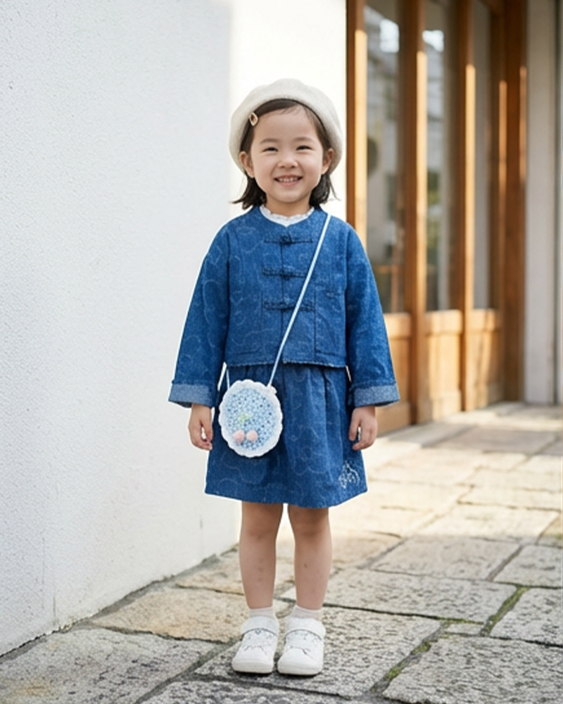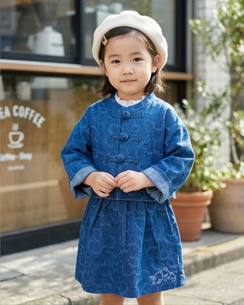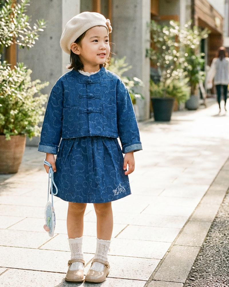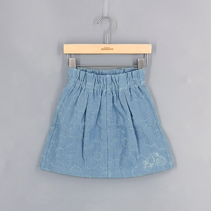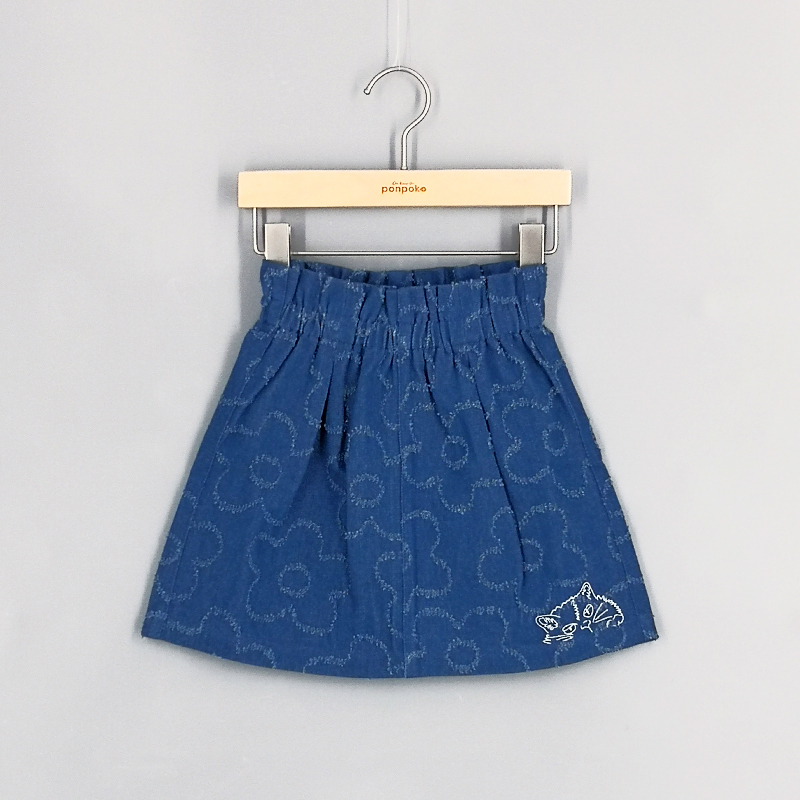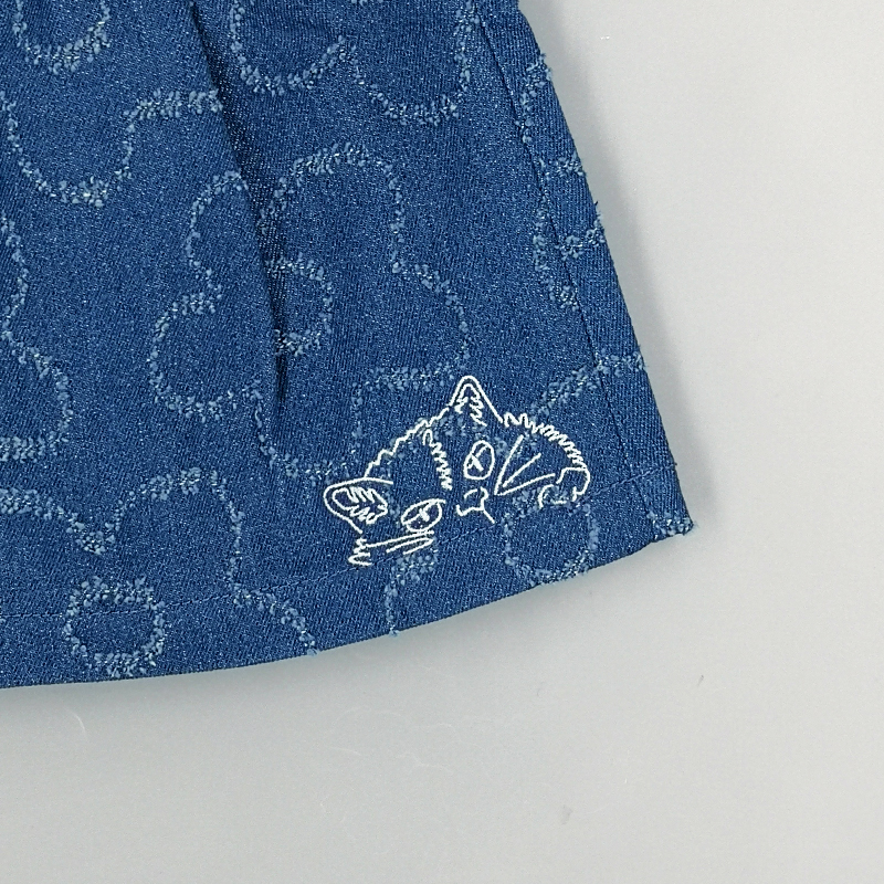 橡筋腰頭, 特色花花圖案, 貓咪刺繡, 牛仔布