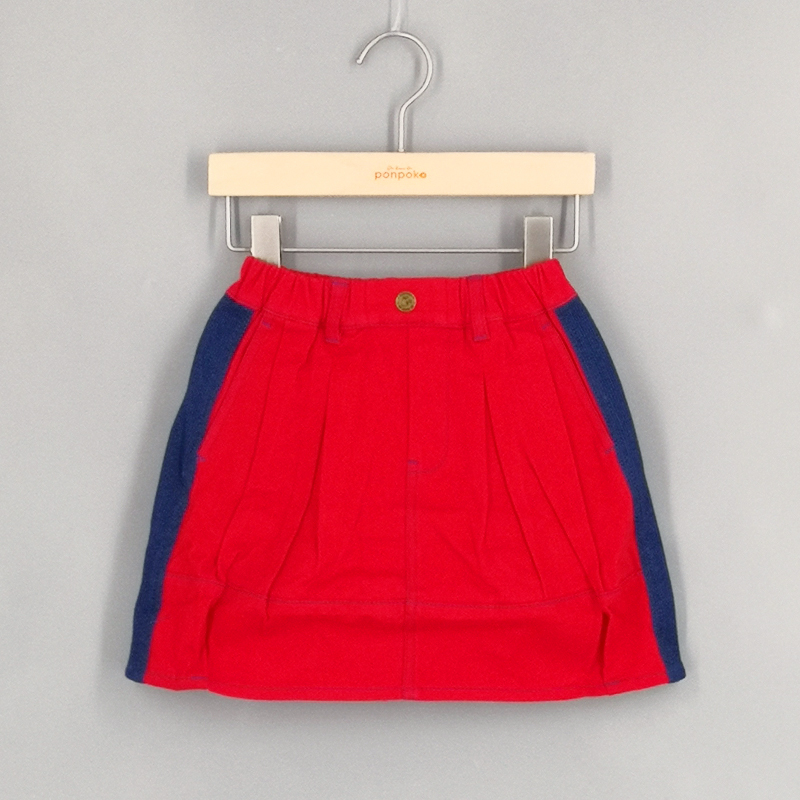 撞色短裙