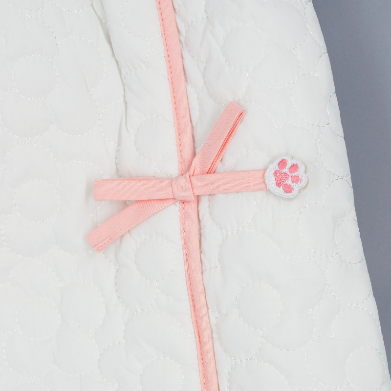 橡筋腰頭, 間棉設計, 蝴蝶結, 貓咪腳印裝飾, 撞色包邊, 花花圖案間棉布, 合身款式