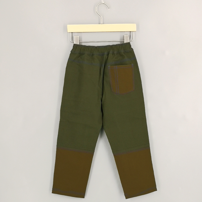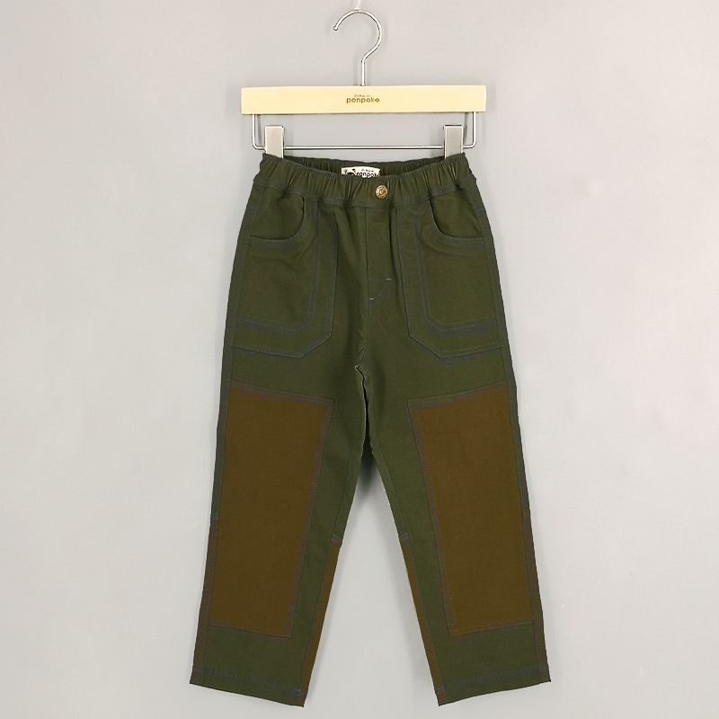 彈性布料, 橡筋腰頭, 撞色車線, 兩側及後方口袋, 寬鬆款式