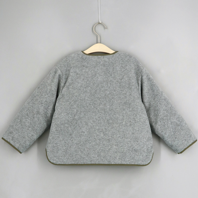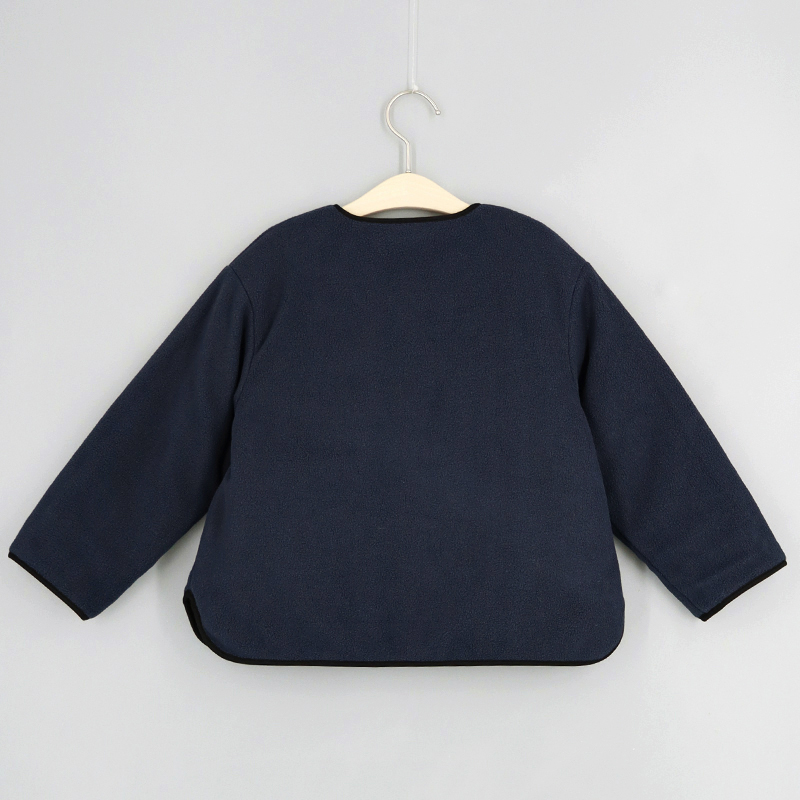 圓領, 前中鈕扣開合, 拼色包邊, 衫腳圓角處理, 兩面用