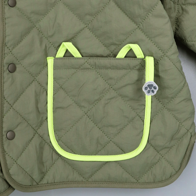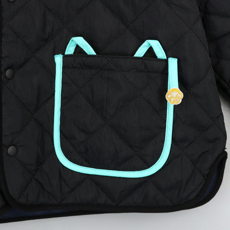 外:間棉設計, 前方口袋, 貓咪腳印裝飾, 貓耳撞色包邊口袋, 背面As Know As刺繡標誌