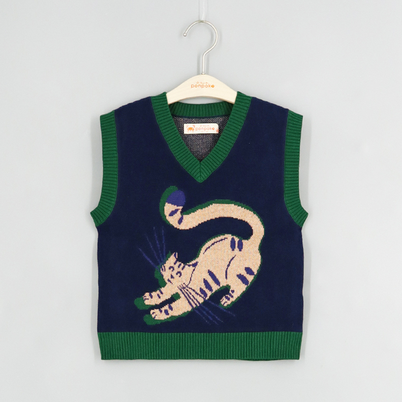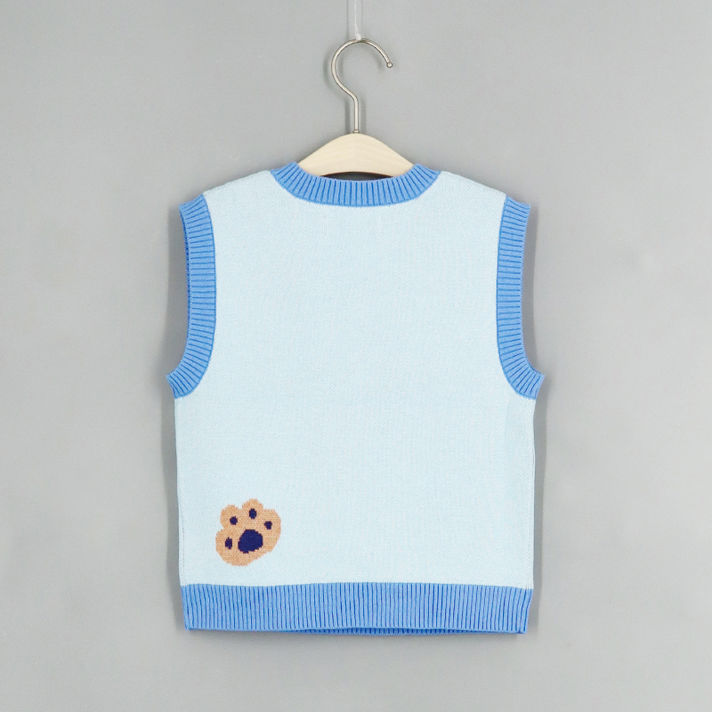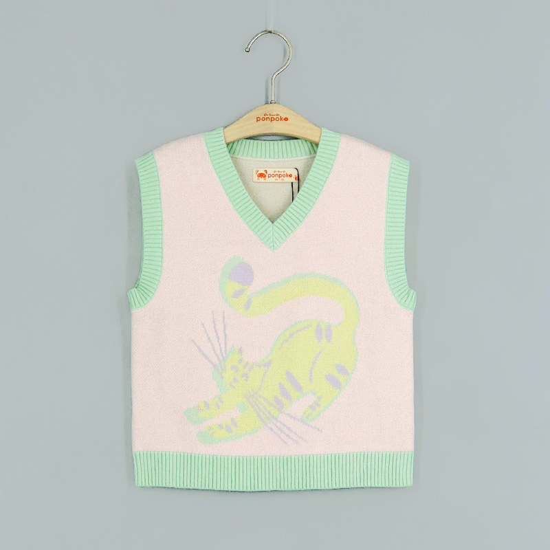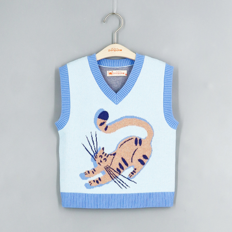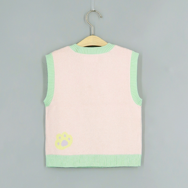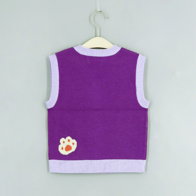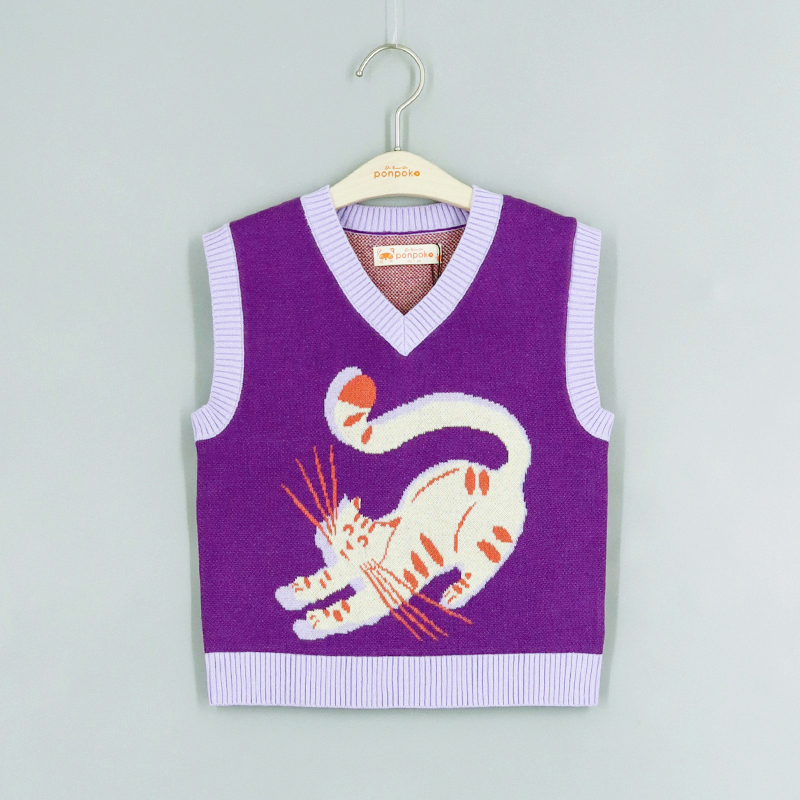 V領, 羅紋領、手袖及衫腳, 正面貓咪圖案, 背面貓爪印圖案, 男女通用款式, 合身款式, 芝麻針織布, 全棉