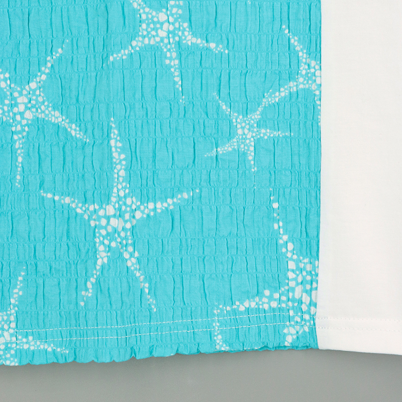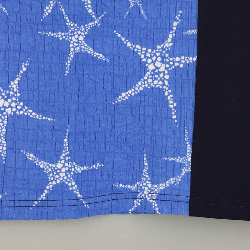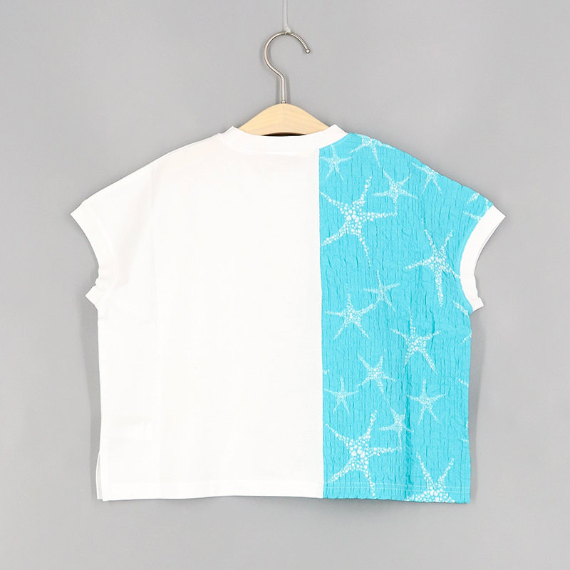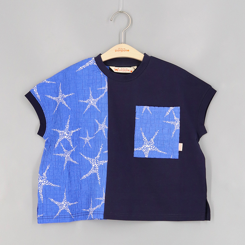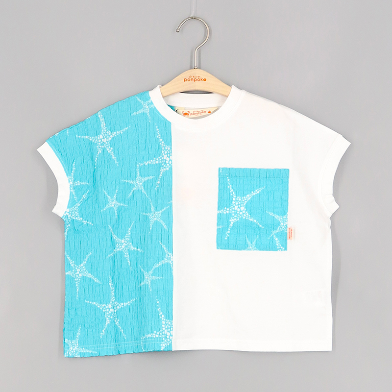 圓領, 胸袋, As Know As刺繡章, 下擺開叉, 海星圖案, 寬鬆款式, 撞色風格, 拼布風格