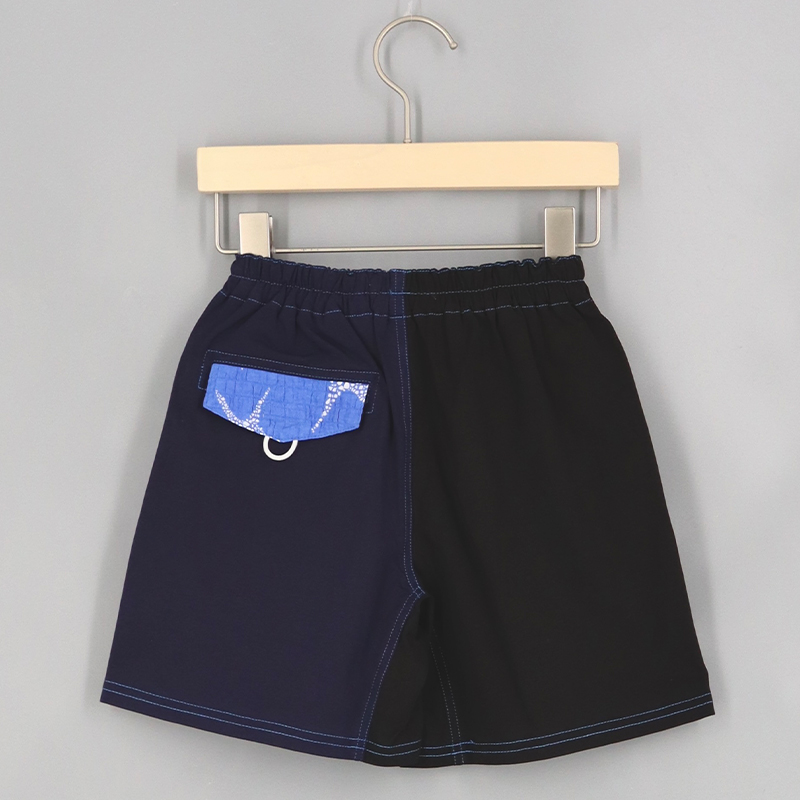 橡筋腰頭, 海星圖案, As Know As刺繡章, 兩側口袋, 後方魔術貼口袋, 拼布風格