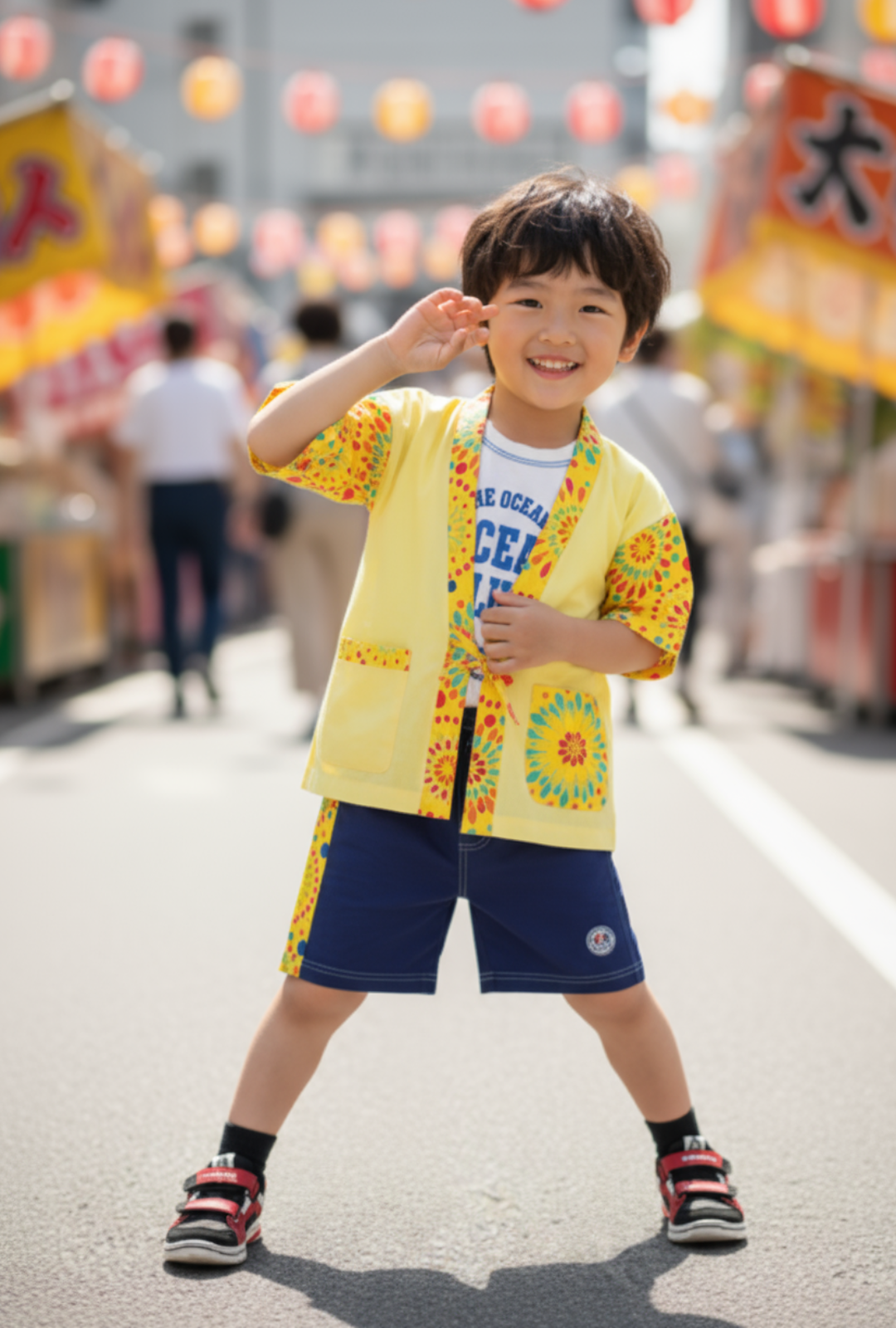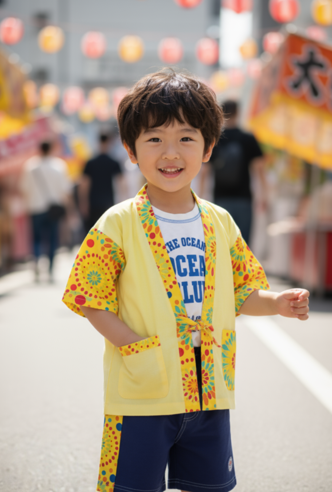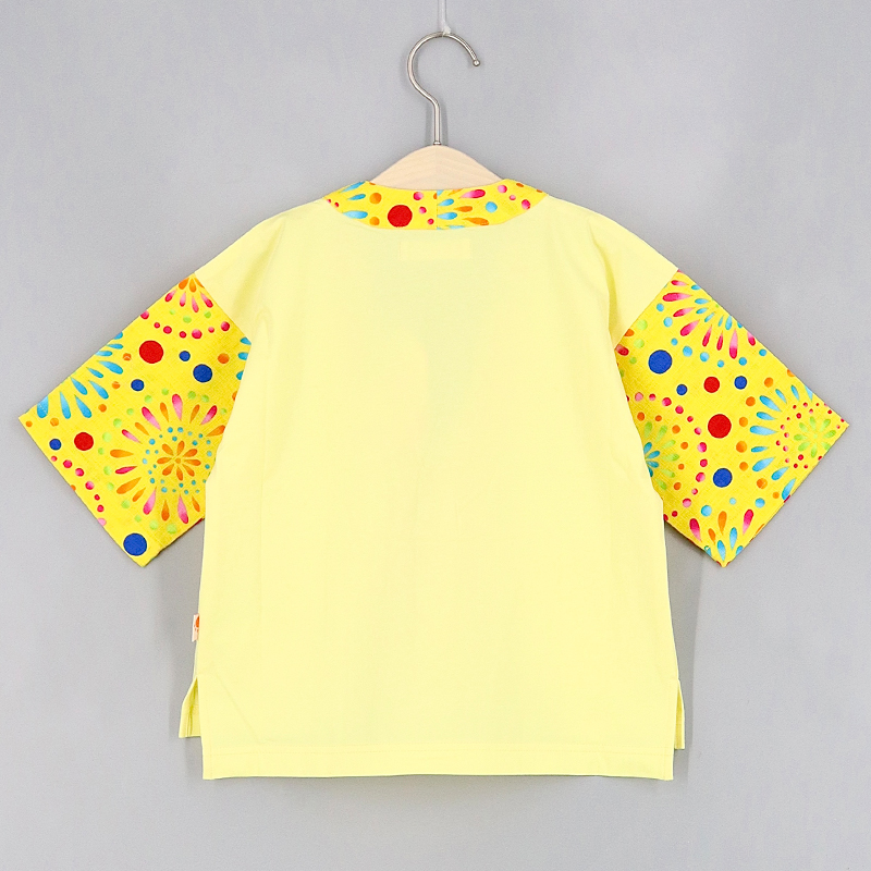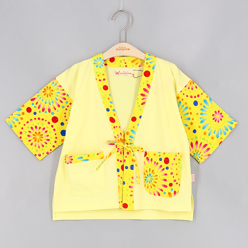 V領, 前方口袋, 開叉下擺, 品牌小標籤細節, 前短後長衫腳, 蝴蝶結, 夏日祭典印花布, 拼布風格