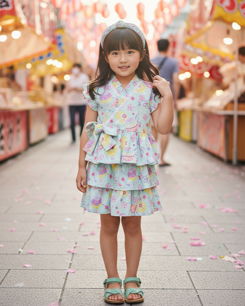 橡筋腰頭, 疊層設計, 附打底褲, 夏日祭典印花布