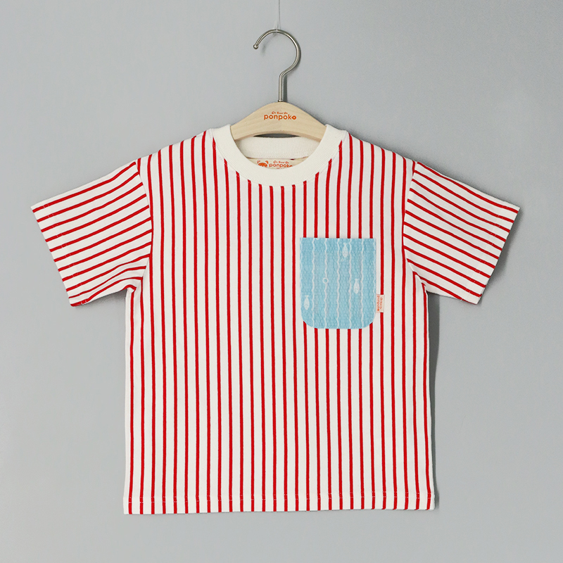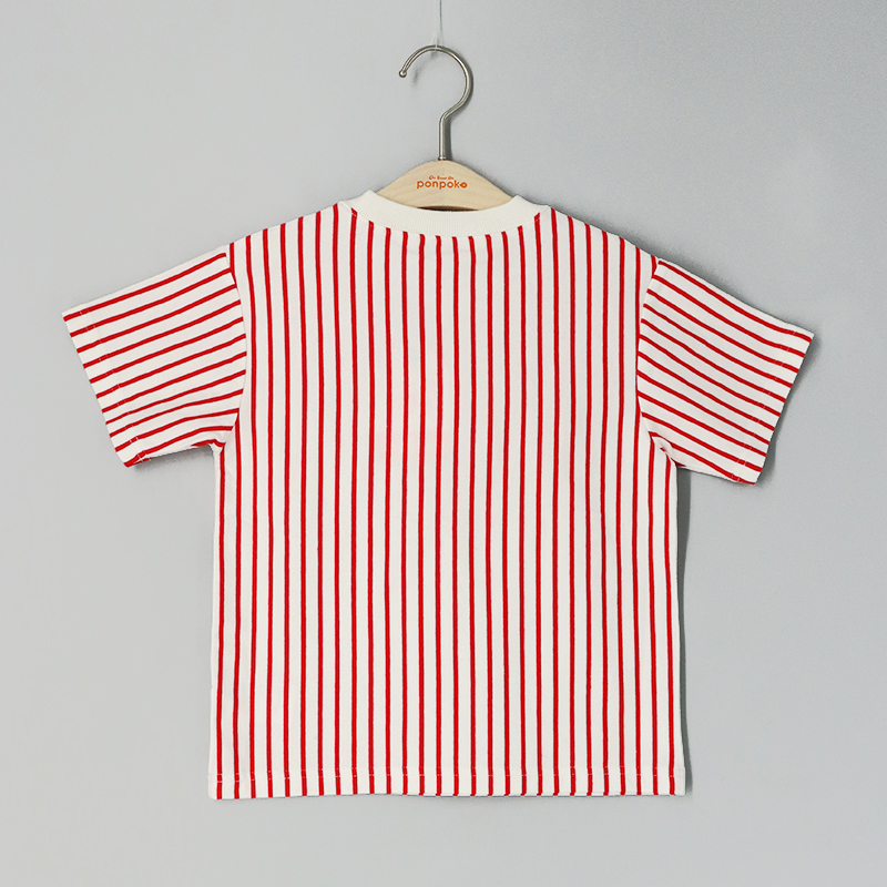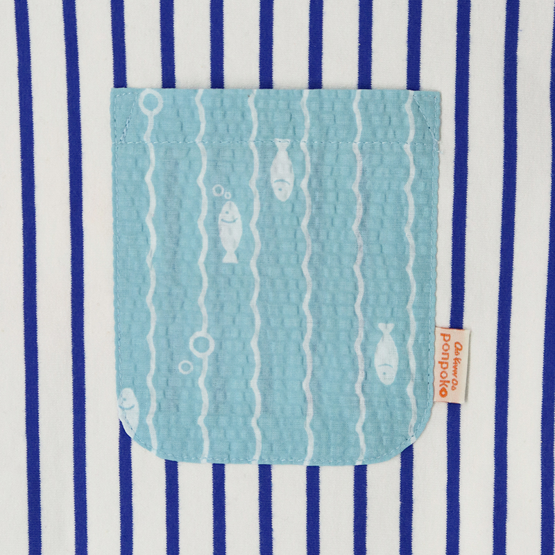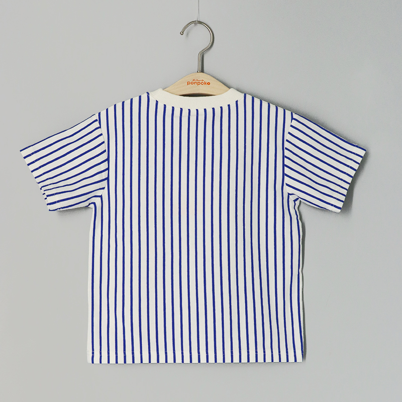 圓領, 短袖, 直紋設計, 拼布胸袋設計, 羅紋圓領, 合身款式