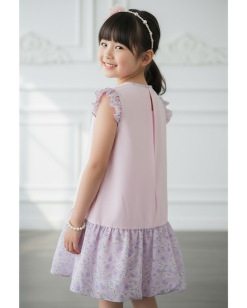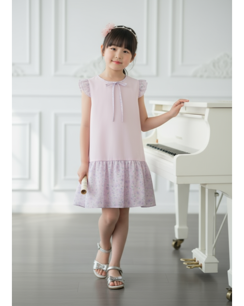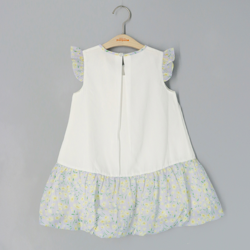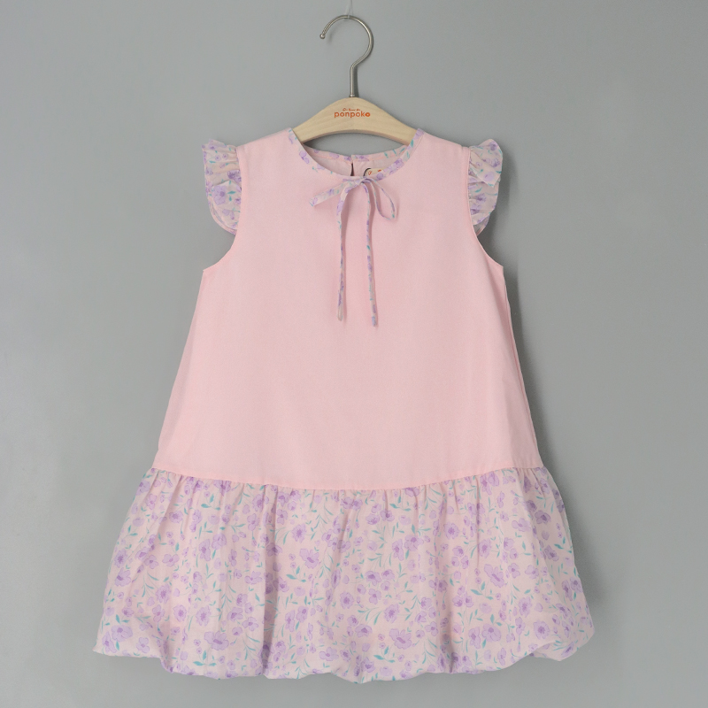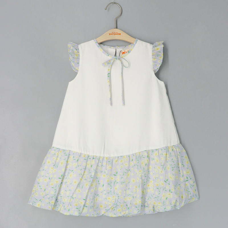 雞翼袖, 領後鈕扣開合, 領口蝴蝶結, 泡泡裙, 打褶袖口