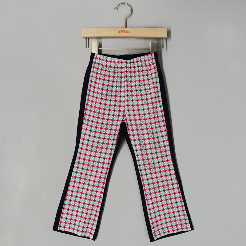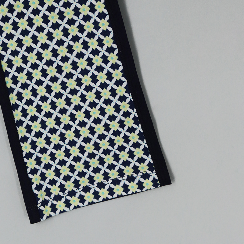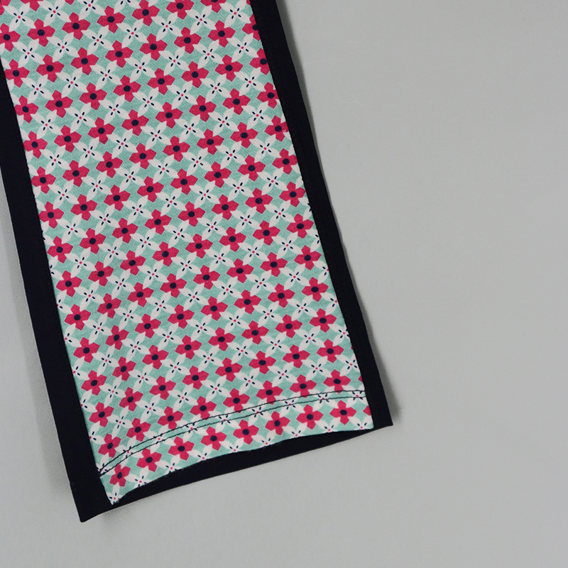 高腰款, 喇叭褲, 橡筋腰頭, 復古花花拼布, 前後面撞布風格, 彈力緊身褲, 長褲, 貼身款式