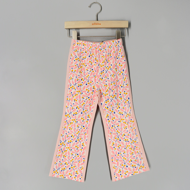 高腰款, 喇叭褲, 橡筋腰頭, 碎花拼布, 前後面撞布風格, 彈力緊身褲, 長褲, 貼身款式
