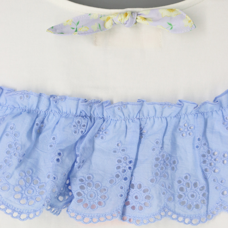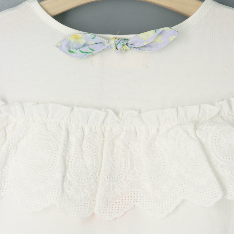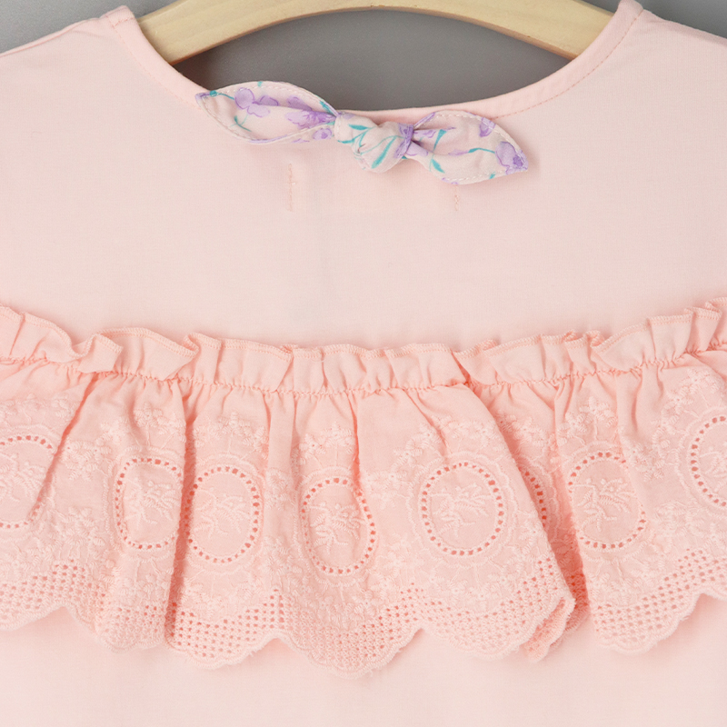 圓領, 大花邊飾, 鎖匙窿細節, 拼布設計, 碎花蝴蝶結, 寬鬆合身