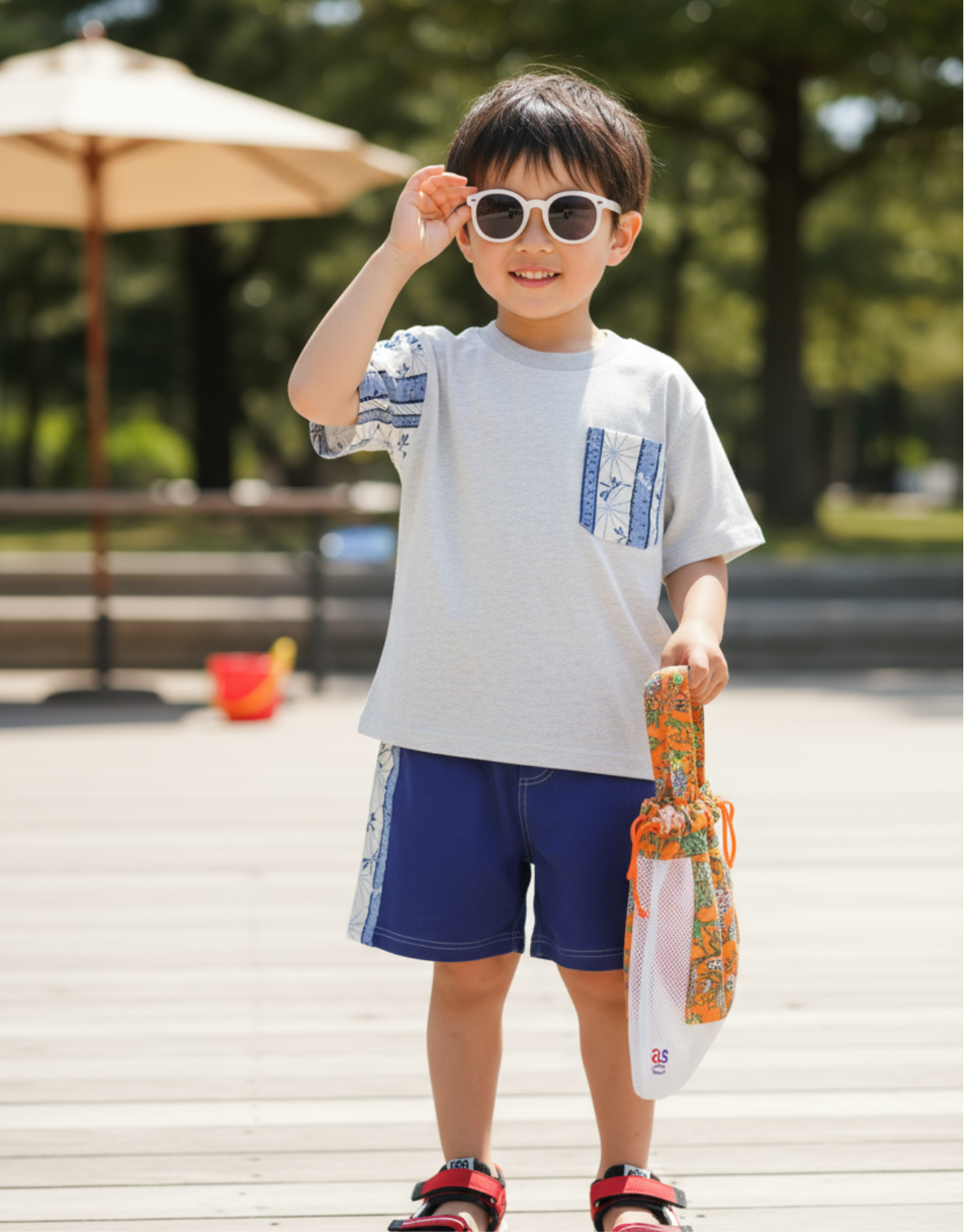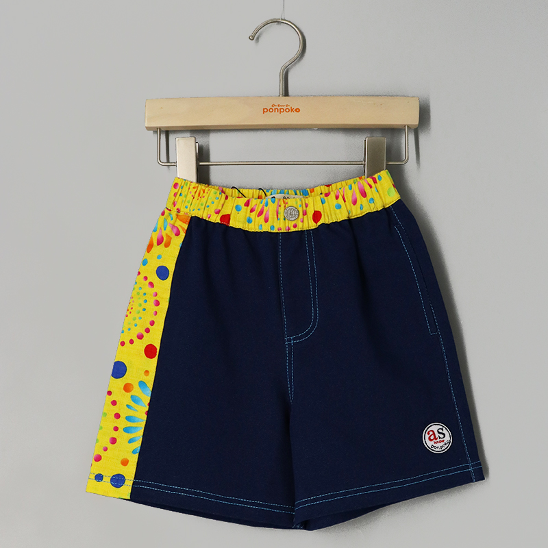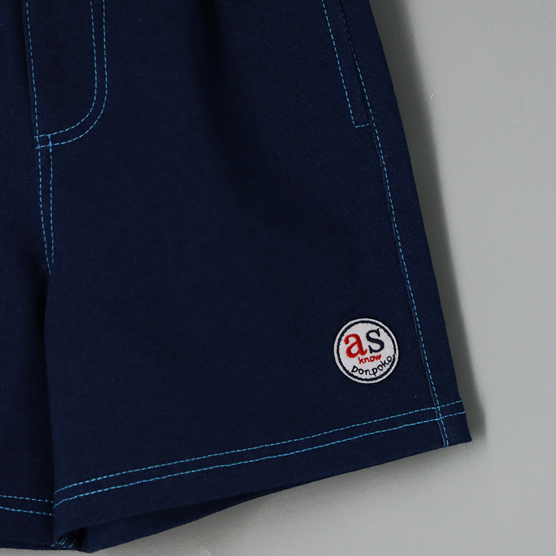 和風拼布, 口袋, 短褲, 合身款式, 正面有AS車花章