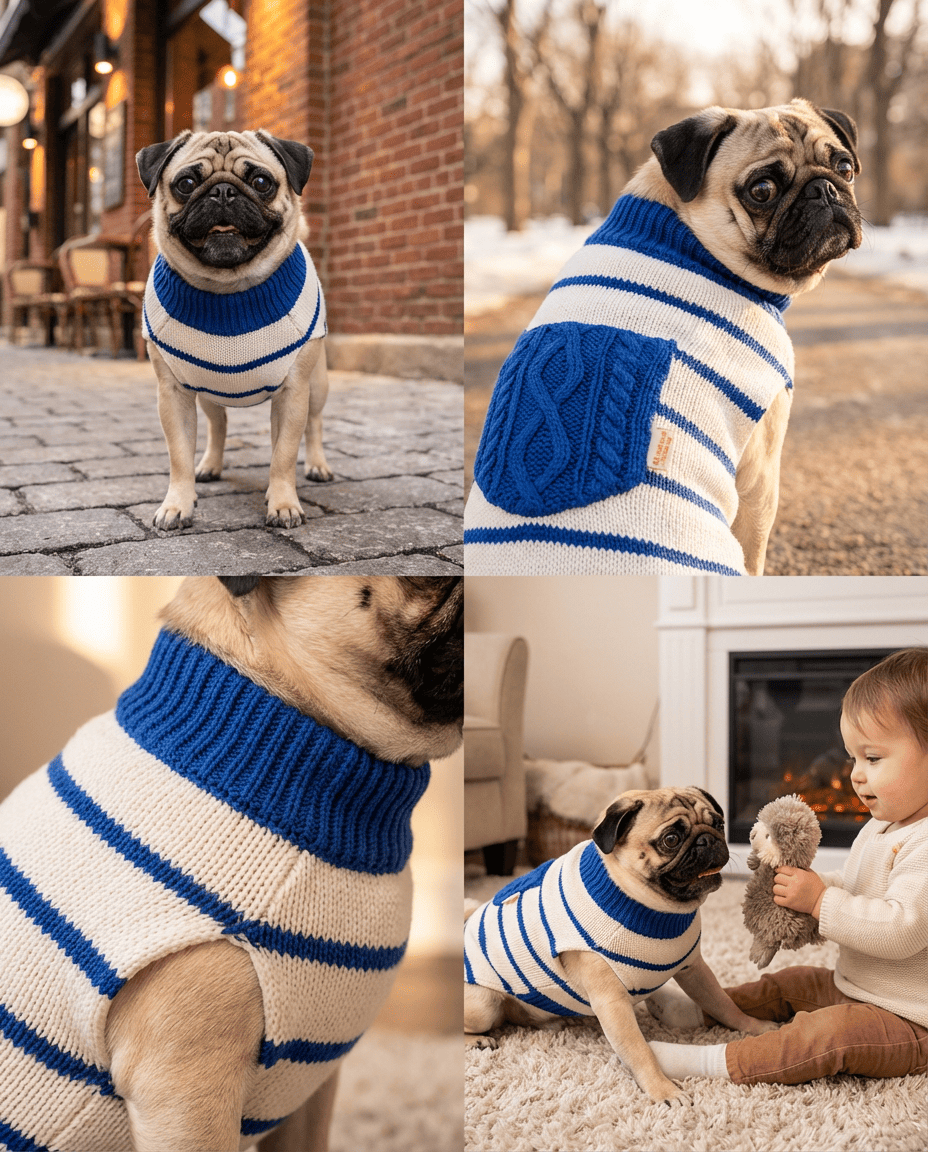 狗仔衫, 寵物衣服, 針織衫, 針織細節, 羅紋邊緣, 全棉成份, 袋款設計細節